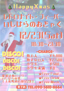 2023年12月14日 いしはらクリスマスパーティーを開催します! 『レトロナイトフィーバー いしはらのおきゃく』 12/23(土) 18:30~21:30@集落活動センターいしはらの里(高知県土佐郡土佐町1228) クリスマスパーティーを開催します!あったかい料理とアゲアゲの音楽とほろ [……
